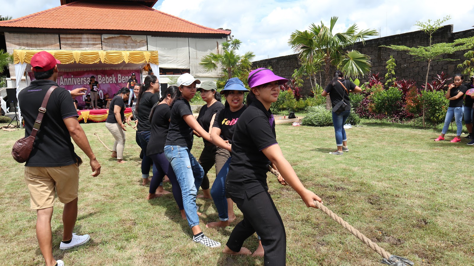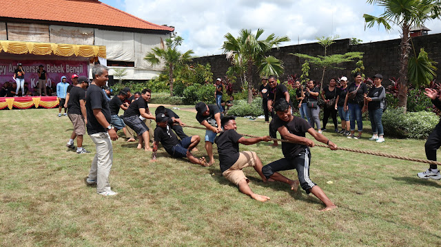 After that, it continued with team building games, which were held in the Bebek Bengil Ubud field, while the team building events that were held included cracker eating competitions, sack races, tug of war competitions and various other exciting competitions.